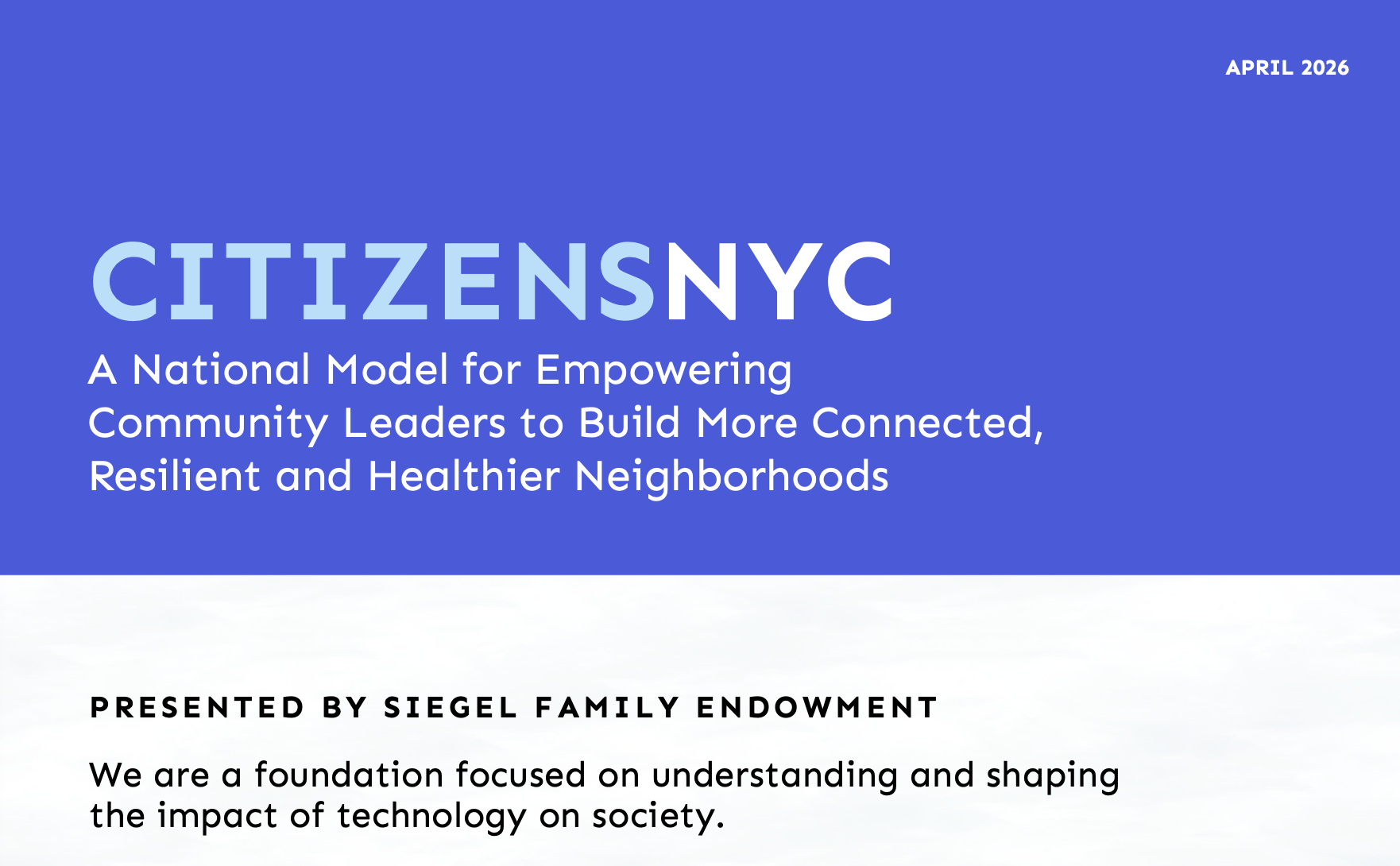 Technological change has radically altered the way we live, work, and learn. The transformation of the global economy has impacted society on every level—from schools to the workplace to our communities—and altered the terms on which people are able to access opportunities and thrive in daily life. In order to address the biggest challenges we face today, we aim to support technology that serves the public interest, and ensure all people can engage with and affect change in a rapidly evolving world.